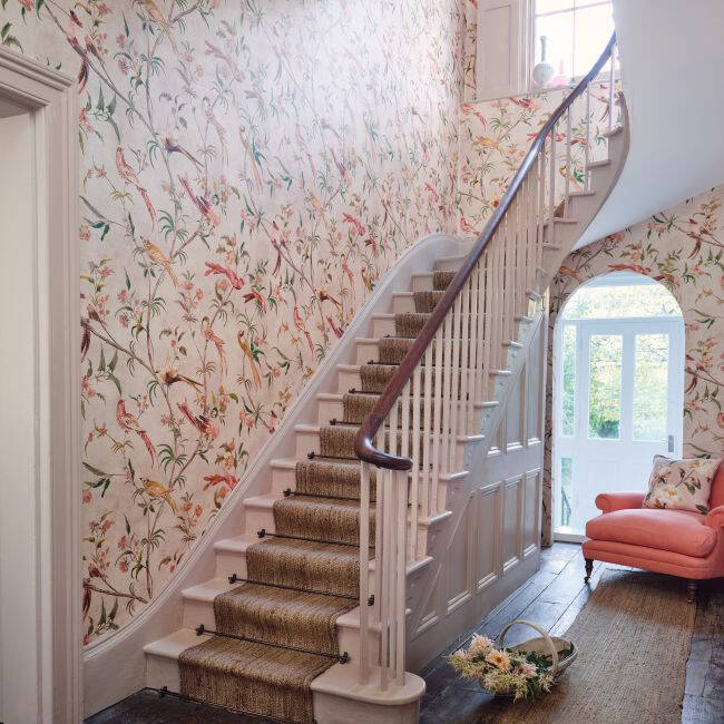 Natuurlijk ben ik ook geïnspireerd geraakt door deze film en meteen komen er diverse moderne behangen in mij op die ik vind passen in deze stijl. Hieronder zie je hoe dit soort chinoiserie behang (deze is van Rebel Walls) goed past in een modern interieur. Het okergele zoals hiernaast is van Feathr heb ik laatst nog toegepast in een kleur en behangadvies voor een familiehuis in Goes, en onlangs nog in een andere kleur voor een advies in Bussum. In dit laatste advies is een klassieke sfeer gecombineerd met een modern patroon van Pierre Frey en Elitis behang.